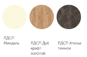 Цвет корпуса открытых полок: Ателье темное, Дуб крафт золотой, Миндаль