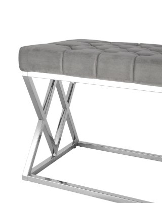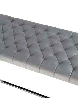 Обивка сиденья выполнена из мягкого велюра - приятного на ощупь, износостойкого и простого в уходе материала. Декорирована каретной стяжкой, которая обладает не только эстетическими свойствами, благодаря такой строчке ткань меньше растягивается и деформируется в процессе эксплуатации.