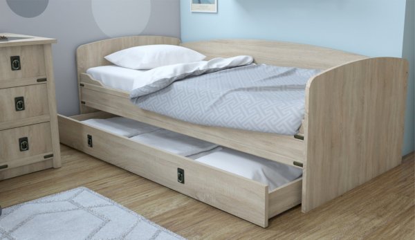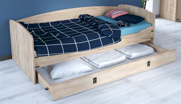 Ящик для белья можно использовать как дополнительное спальное место. Легко выдвигается за счет множества упоров в виде роликов.