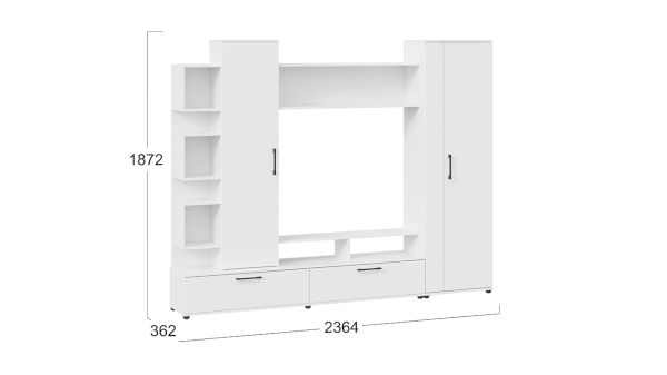 Гостиная «Дакота» собрала в себе самые актуальные тенденции современного дизайна: контрастные цвета и интересная ассиметричная компоновка. Данную коллекцию дополняют черные пластиковые ручки, которые имеют матовое покрытие и не большой вес, тем самым зрительно не нагружают фасад мебели. Она украсит любой интерьер и сделает его современным и уютным.
