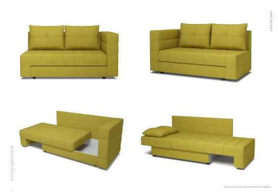 Наличие универсального направления трансформации механизма позволяет в любой момент изменить внешний вид кушетки.