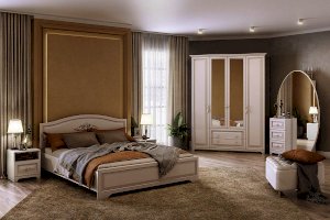 Этот утонченный элемент интерьера украсит собой любую спальню. Совмещает в себе как функционал трюмо, так и вместительного шкафа. Множество скрытых зеркалом полок позволит хранить в нем максимальное количество вещей и аксессуаров. Столешницу из МДФ украшает фрезеровка. На фасады выдвижных ящиков нанесен фрезерованный рисунок.