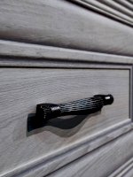Корпус модуля выполнен из ЛДСП толщиной 16 мм, а в качестве украшения мебели применяется фигурный МДФ профиль. Ручки в цвете «античная бронза» синхронно отражают рисунок декоративного профиля и придают мебели выразительный вид.