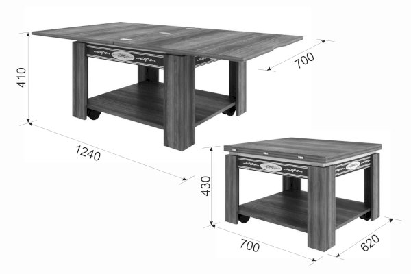 Длина разложенного столика, мм 1240