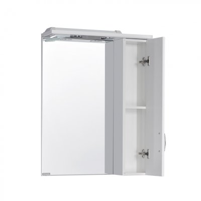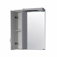 Раковина, несмотря на свой миниатюрный размер, имеет удобную форму. Для хранения вещей предусмотрены вместительные полки в тумбе под раковиной, а мелкие ванные принадлежности удобно хранить в зеркальном шкафу, который вдобавок оснащен светильником и выключателем с розеткой для дополнительного удобства. Непосредственно зеркальное покрытие имеет защитный влагостойкий слой, и не будет запотевать. Для своего удобства вы можете выбрать зеркало с левым или правым шкафом.