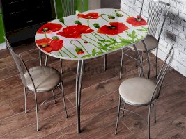 Овальный стол с фотопечатью дополнит абсолютно любую кухню, так как изображение стола Вы выбираете сами.