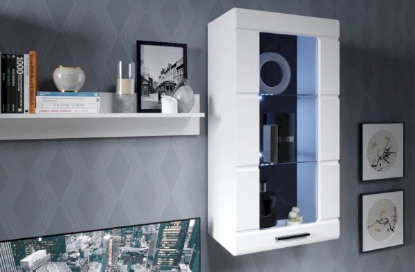 Стенка Рио выполнена в современном стиле. Белые глянцевые фасады из МДФ и витрины с прозрачным стеклом создают в помещении ощущение простора и легкости. Задняя стенка из ЛХДФ Кроношпан (Австрия) черного цвета красиво контрастирует с фасадами и корпусом белого цвета. Светодиодная подсветка сделает акцент на дорогих для Вас вещах, таких как фото, статуэтки или посуда. Мебель выполнена из экологически безопасных и надежных материалов.