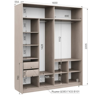Наполнение шкафа выдвижные ящики / штанга