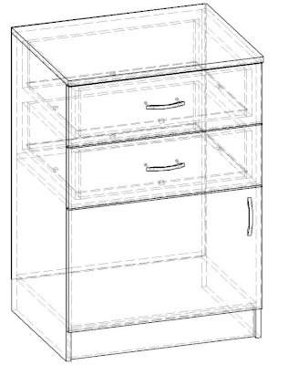 • Корпус, полки и фасады изготовлены из ЛДСП 16 мм с кромкой ПВХ 0,4 мм.
