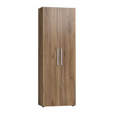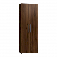 Распашной шкаф с глухими фасадами в декоре Дуб Табачный комплектуется выдвижной штангой для одежды. Глухие фасады с серой ручкой из массива. Регулируемые опоры шкафа помогут компенсировать неровности пола.
