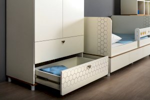 • Выдвижные ящики на шариковых направляющих полного выдвижения
