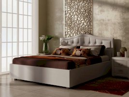 Элегантная интерьерная кровать с изголовьем, украшенным декоративными пуговицами, которые можно заменить на стразы. Модель изготовлена из ДСП. Обратная сторона изголовья обита спандбондом, но, при желании, её можно выполнить из основного обивочного материала.