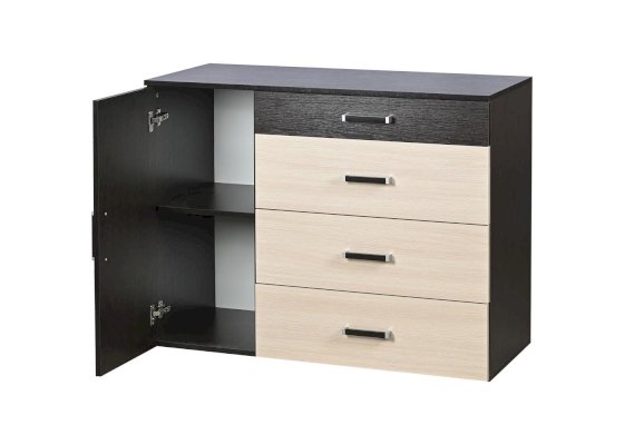Модификация комода Вега К-02 отличается расширенным функционалом. В конструкцию комода была добавлена закрытая секция с полкой, которая делит секцию на два отсека для хранения вещей.