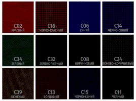 | Цвет | БЕЛЫЙ / ЗЕЛЕНЫЙ / КОРИЧНЕВЫЙ / КРАСНЫЙ / СЕРЫЙ / СИНИЙ / СИРЕНЕВЫЙ / ЧЕРНЫЙ |