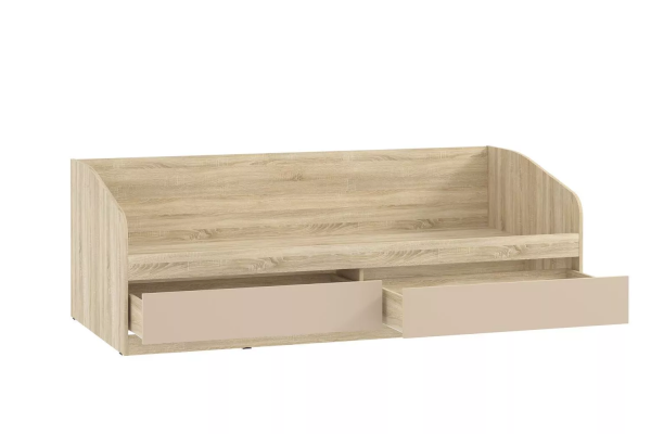 Вместительные бельевые ящики удобны для хранения постельных принадлежностей. Боковая спинка предотвращает истирание настенного покрытия. Кровать полностью безопасна для ребенка: у модели нет острых углов и накладных ручек на фасадах ящиков.