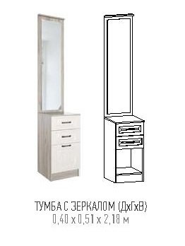 Материал: корпус ЛДСП 16 мм/ фасады МДФ, зеркало