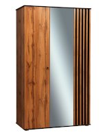 В этой модели – самое оптимальное распределение – как внешне, так и внутренне. Зеркальное полотно в центре очень функционально. Вы можете видеть себя в полный рост, и нет надобности вешать в комнате зеркало. За левой дверцей скрываются полки. Если шкаф стоит в спальне, они отлично подойдут для постельного белья или вещей, которые принято хранить в сложенном виде – свитера, поло, футболки, толстовки, джинсы и т.д. Каждая из полок выдерживает вес до 5 кг. Рядом, за двумя распашными дверцами, находится отделение для одежды на вешалках. И не только! Удобная полка-антресоль из ЛДСП сверху, еще одна полка внизу – здесь можно уместить многое! Металлическая штанга выдерживает вес до 20 кг.