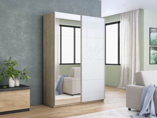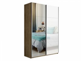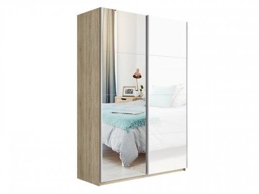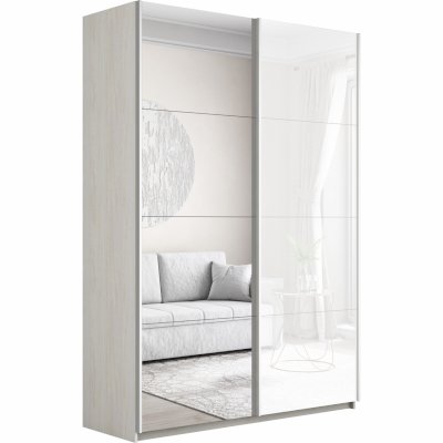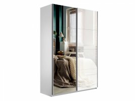 Шкаф-купе 2-х дверный Прайм Зеркало/Белое стекло 1400х2300х570 мм