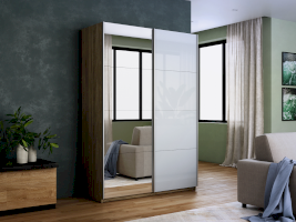 Шкаф-купе 2-х дверный Прайм Зеркало/Белое стекло (Е1)