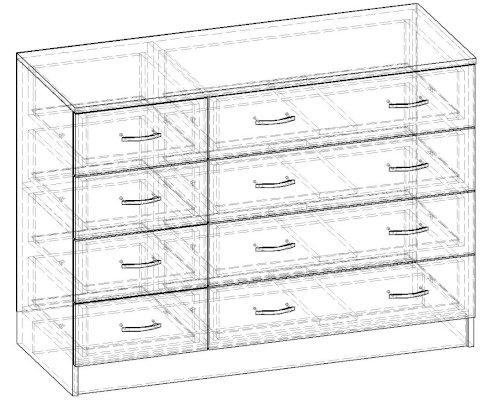 Данное изображение представлено в следующих цветах ЛДСП: корпус - Ясень Шимо тёмный, фасады - Ясень Шимо светлый.