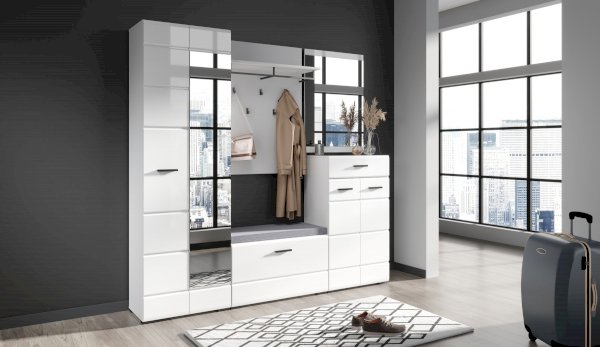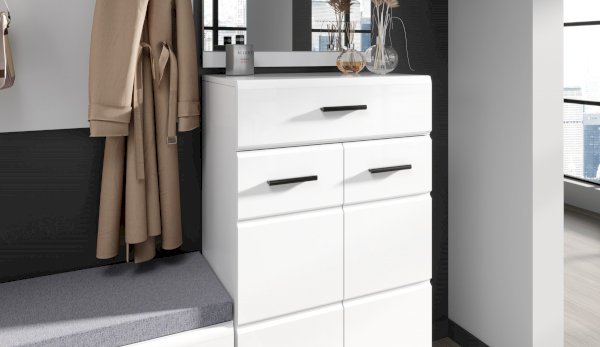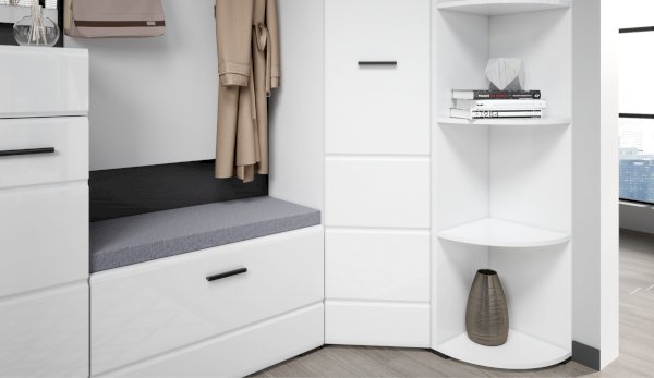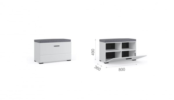 Тумба Йорк – это современная компактная модель для хранения повседневной обуви. Глянцевые белые фасады High Gloss из МДФ наполняют помещение светом и зрительно увеличивают пространство. Тумба оснащена вместительным отделением с полками, на крышке расположена съемная мягкая подушка, на которую удобно присесть во время переобувания.