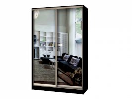 корпус - Венге Цаво, фасады - зеркало, рамка двери и треки - Серебро матовое.
