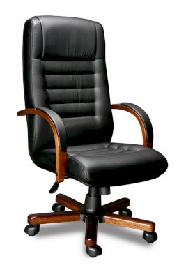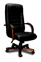Кресло с высокой спинкой, с подлокотниками дугообразной не замкнутой формы с мягкими накладками обитыми в цвет кресла.