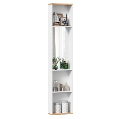 - 3 открытые полки. Образуют 4 ниши: 3 для хранения (высотой 416 мм каждая) и 1 с зеркалом (высотой 850 мм)