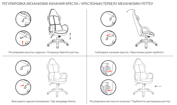 Тип механизма кресла: "топ-ган" качание с регулировкой под вес и фиксацией в 1 положении