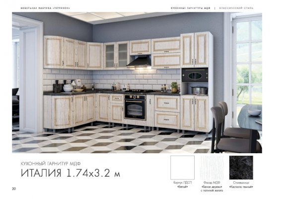 Модульный кухонный гарнитур Италия белое дерево с патиной золото (Террикон) - за 61 218 руб. в Дмитрове. Купите на сайте dmitrov.onlinemarketmebeli.ru или по телефону 8(800)505-30-63 уже сегодня! Уточнить наличие, комплектацию, актуальную цену можно бесплатно у менеджера ежедневно. Закажите Модульный кухонный гарнитур Италия белое дерево с патиной золото (Террикон) до конца акции! Доступна покупка в кредит, рассрочку. Доставим со склада или на заказ.