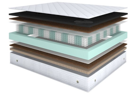 Наполнитель: Высокоэластичная пена с эффектом памяти Memorix, кокосовая койра, НПБ мультипокет 520 шт/кв.м., система усиления боковой поддержки, ППУ, перфорированный латекс Latex Perfo