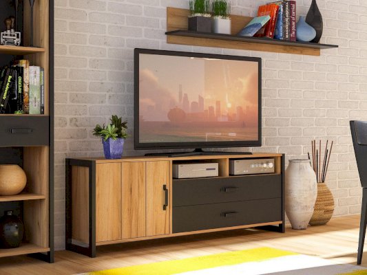 Тумба комбинированная Дуб золотой/Черный Техно 678210