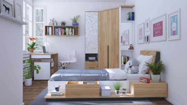 Цвет бежевый / белый / дуб (сонома, молочный, феррара) / синий