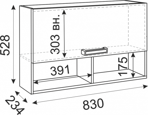 • Фасад на газлифте с надежной фиксацией в открытом виде.