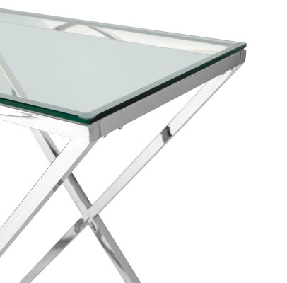 Столешница выполнена из прозрачного закаленного стекла, которое обладает повышенной прочностью и стойкостью к перепадам температур, способно выдерживать большие нагрузки.