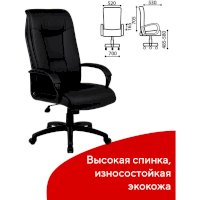 Офисное кресло с минималистичным дизайном. Износостойкая экокожа, прочные пластиковые подлокотники с накладками, плотная набивка и механизм качания с фиксацией под вес пользователя - ничего лишнего, всё самое необходимое для продуктивной работы. Доступное, качественное кресло, среднего ценового сегмента.