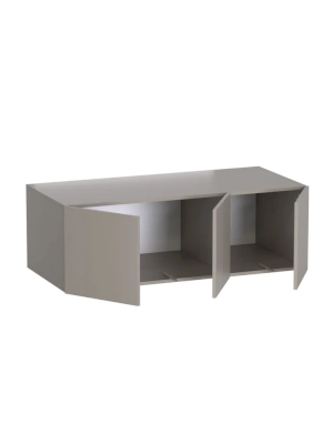 Антресоль для шкафа имеет три дверцы, открывающиеся в стороны. За ними расположено место для хранения вещей (одежды, постельного белья или принадлежностей). Все дверцы открываются с помощью механизма от нажатия (push to open). Дверцы с доводчиками, оборудованы соответствующими накладными и полунакладными петлями.