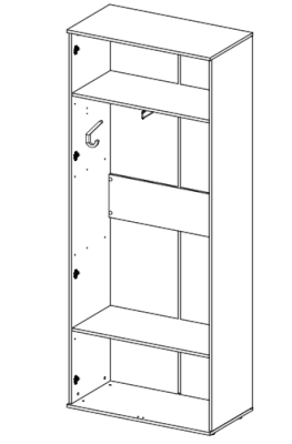 • 2 полки, 1 штанга выдвижная для одежды за распашными дверями с зеркалом