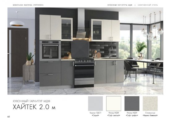Кухня Хайтек изговаливается также в цветах серый/лайм глянец; серый/крем брюле глянец; серый/мокко глянец; серый/софт графит; серый/лайм глянец. Модули в этих цветовых решениях вы сможете найти в нашем интернет-магазине.
