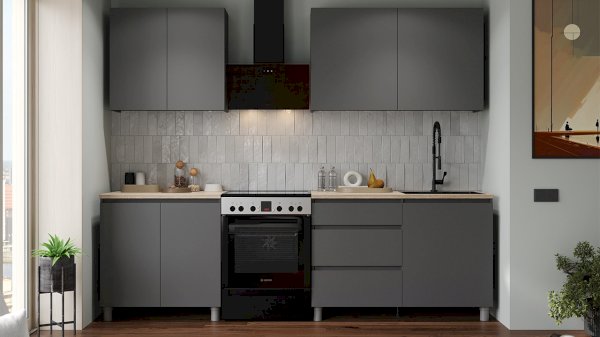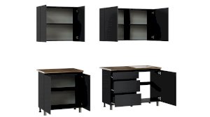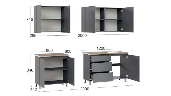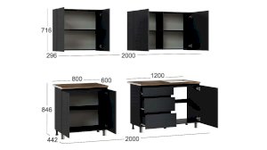 Сборка: нижнего корпуса шириной 1200 мм ящики всегда слева, верхних корпусов и стола 800 мм - универсальная