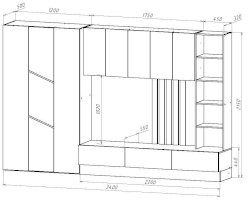Функционал хранение посуды / хранение одежды / зона для ТВ