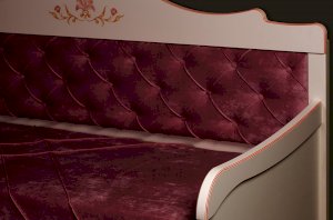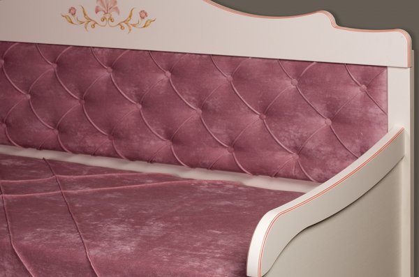 • Мягкая спинка кровати обтянута приятной на ощупь велюровой тканью и утянута пуговицами