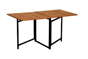 Стол на металлическом каркасе со столешницей из ЛДСП из стола с полноценной столешницей 1050х590 мм складывается до конструкции толщиной всего 87 мм.