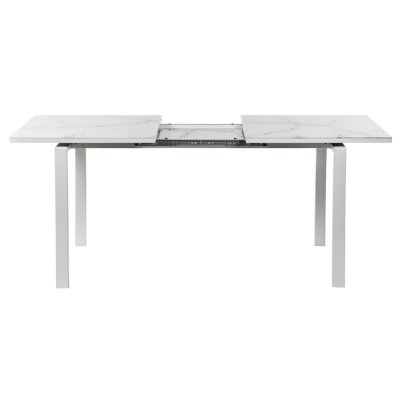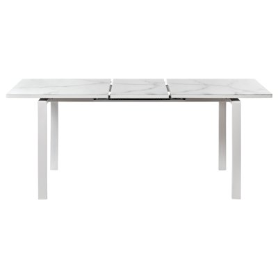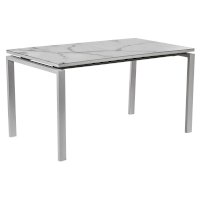 Раскладной стол с "парящей" столешницей из закалённого стекла толщиной 4 мм и рисунком под натуральный камень, на основании из ЛДСП 22 мм, станет центром притяжения внимания. Центральная вставка позволит увеличить стол на 40 см с 140 до 180см. Прямые устойчивые металлические ножки позволят с комфортом разместиться большой компании. Стол поставляется в разобранном виде (2 коробки).