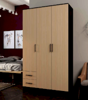 Практичный и функциональный шкаф распашной №5 изготовлен из ламинированной ДСП. Это трехстворчатая модель дополненная двумя выдвижными ящиками. Простой и лаконичный дизайн подходит к любым современным интерьерам. Расцветка и текстура отделки стилизованы под древесину дуба оттенков венге и молочный. Скромная фурнитура отлично сочетается с гладкими, не отягощенными декорированием фасадами.