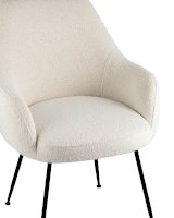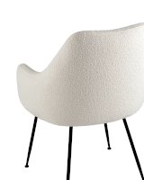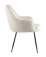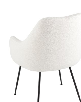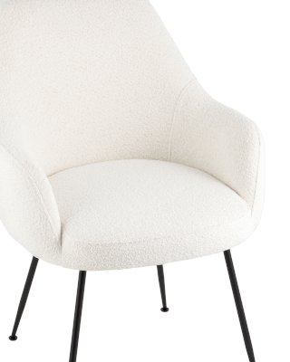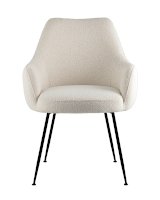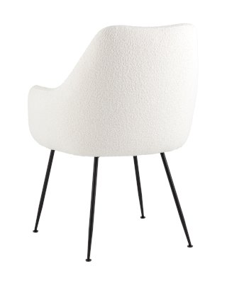 Изящный стул с комфортным сиденьем и спинкой. Основание и ножки черного матового цвета изготовлены из прочного металла. Обивка выполнена из прочной ткани с мягким ворсом в стиле букле, необычная фактура и мягкость добавляют стулу больше уюта.