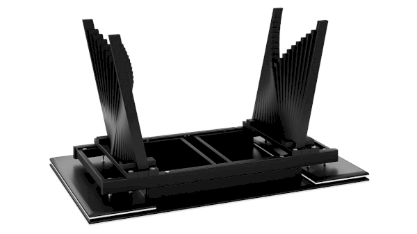 Столешница и торцевые вставки выполнены из МДФ 16 мм с керамогранитом 6 мм. Керамогранит отличается высокой прочностью, долговечностью, надежностью и термостойкостью. Он не требует особого ухода и не подвержен повреждениям при регулярном использовании. Опора необычной формы выполнена из металлических трубок, соединённых между собой в единую плиссированную конструкцию и окрашена порошковой краской «Черный муар».
