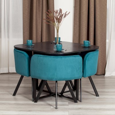 Стулья, оформленные в стиле минимализма, выделяются не только своим внешним видом, но и качеством. Мягкий велюр создает уютную атмосферу, а современная цветовая гамма делает комплект универсальным для разных интерьеров — от классического до современного.