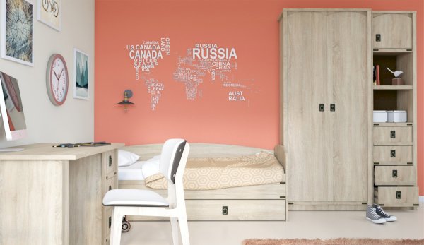 Пенал с открытыми и закрытыми полками служит для хранения учебников, тетрадей и других письменных принадлежностей. Декоративные накладки и профиль из МДФ по вертикальным краям закрывают острые края корпуса и придают шкафу более эффектный и надежной вид. Декоративные элементы на фасаде и металлические ручки MARINE бронзового цвета стилизованы под морскую тематику. Идеально компонуется со всеми модулями системы Валенсия.