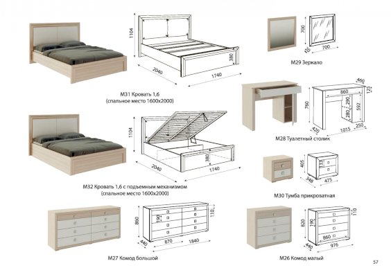 М32 Кровать 1,6 с подъемным механизмом и мягкой частью
